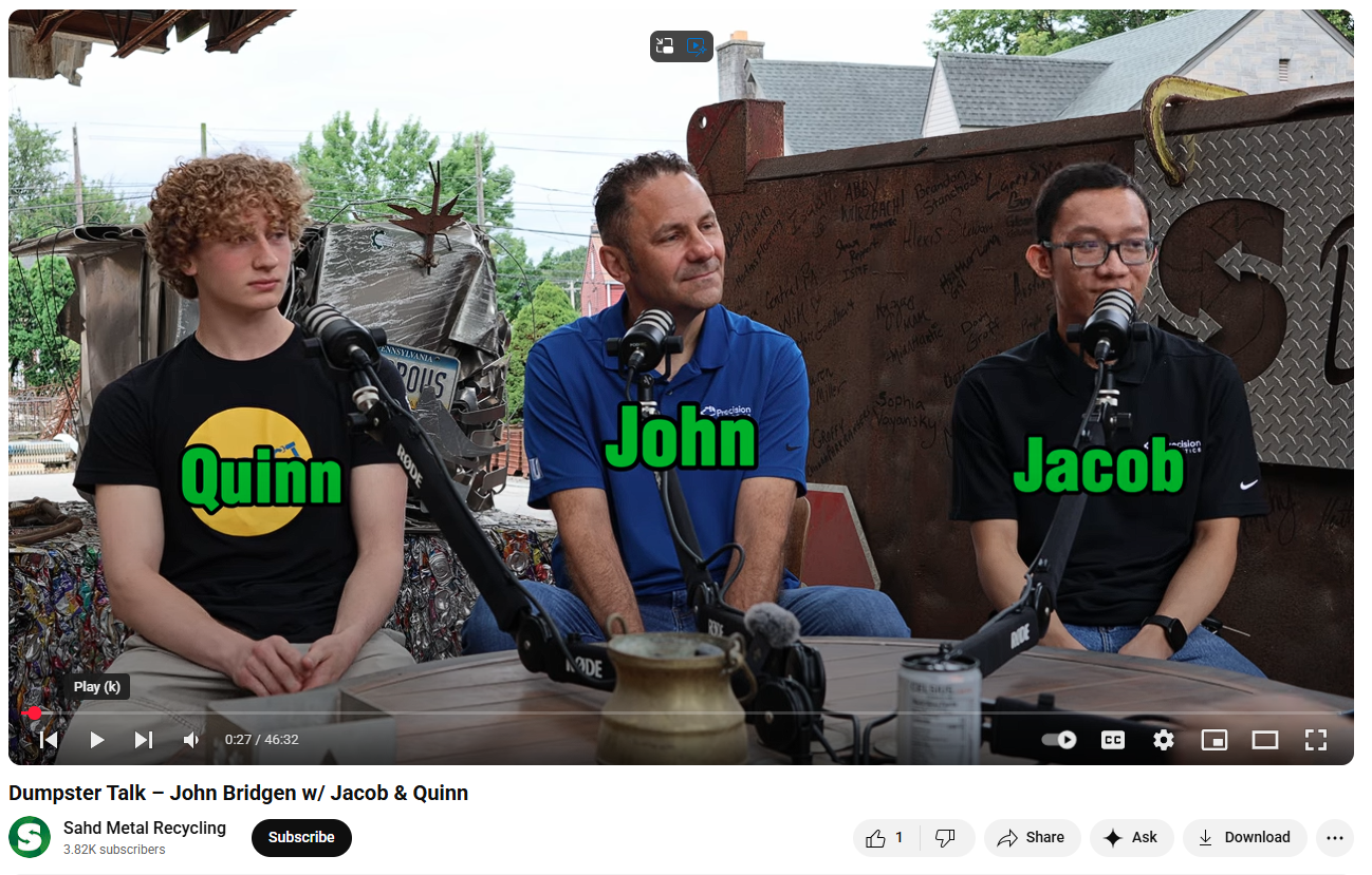 August 2025 - John, Quinn and Jacob were invited to join the acclaimed Dumpster Talk Podcast with our friends from Sahd Metal Recycling to talk about Precision Cobotics and Robotic WorX.